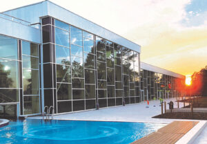 - L’espace aquatique dédié à la natation et aux jeux aquatiques. Il se compose d’un bassin sportif, d’un bassin détente, d’une pataugeoire et des toboggans extérieurs.